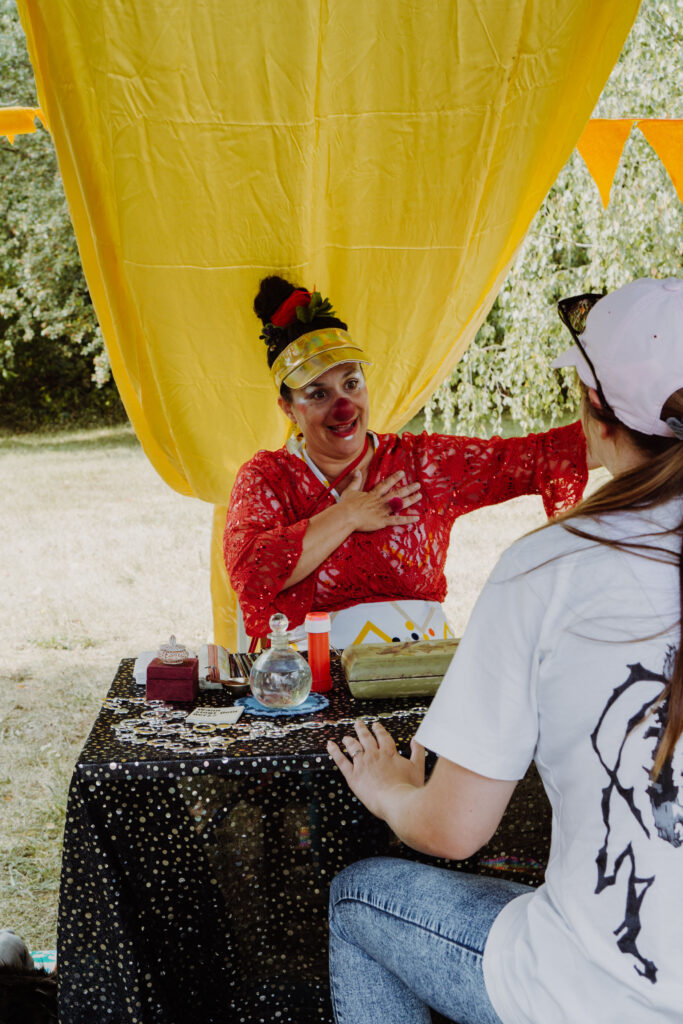 Auf dem Jahrmarkt der Jugendclubs gestalteten die Jugendlichen eigene kreative Angebote und präsentierten einander ihre Clubs. Neben Turmball, Riesenjenga und Ballon-Dart gab es auch eine Stencil-Station und die Möglichkeit, Wikinger-Schach zu spielen. Ein Bingo-Spiel lud zum gegenseitigen Besuchen und Ausfragen ein. Mit dabei auf dem Jahrmarkt waren auch das mobile Wahrsagerin-Büro Ciboulette Klimbim und der Magier Mago Ilić sowie Marcus Boros von der Mobilen Jugendarbeit Morast.